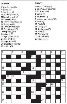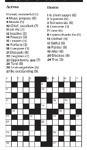 Express quick crossword. Daily Express Quick Crossword April 10, 2023 Crossword ... - Wordplays Daily Express Quick Crossword April 10, 2023 Here are the answers to the Quick Crossword in the Daily Express on April 10, 2023 X Sign in to Save Favorite Dictionary Crossword Puzzle Answers Search for answers to a complete crossword puzzle using a crossword clue, publication, or puzzle title. Daily Express Quick Crossword March 20, 2023 Crossword ... - Wordplays Quick Crossword March 10, 2023 Daily Express Quick Crossword <<< Older Puzzles The Daily Express is a daily national tabloid newspaper in the United Kingdom. It was founded as a broadsheet in 1900 by Sir Arthur Pearson and its sister Paper The Sunday Express was first published in 1918. Daily Express Quick Crossword April 5, 2023 Crossword ... - Wordplays Daily Express Quick Crossword April 5, 2023 Here are the answers to the Quick Crossword in the Daily Express on April 5, 2023 X Sign in to Save Favorite Dictionary Crossword Puzzle Answers Search for answers to a complete crossword puzzle using a crossword clue, publication, or puzzle title. Daily Express Quick Crossword April 4, 2023 Crossword ... - Wordplays Daily Express Quick Crossword April 4, 2023 Here are the answers to the Quick Crossword in the Daily Express on April 4, 2023 X Sign in to Save Favorite Dictionary Crossword Puzzle Answers Search for answers to a complete crossword puzzle using a crossword clue, publication, or puzzle title.